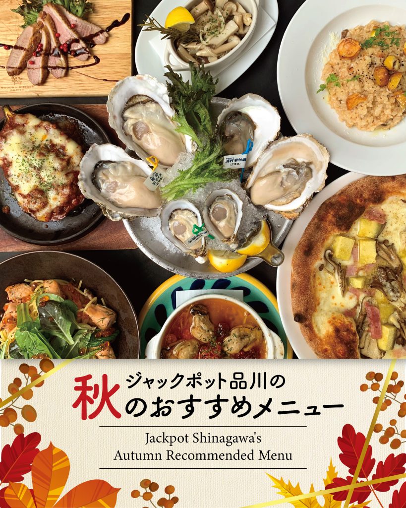 ジャックポット品川では、秋の食材を使ったおすすめメニューを取り揃えております。