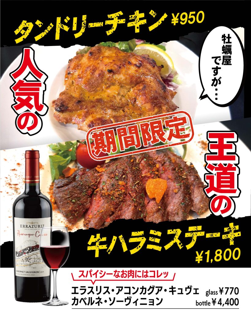 【オイスターバー ジャックポット新宿】期間限定!人気のタンドリーチキンVS王道の牛ハラミステーキ!