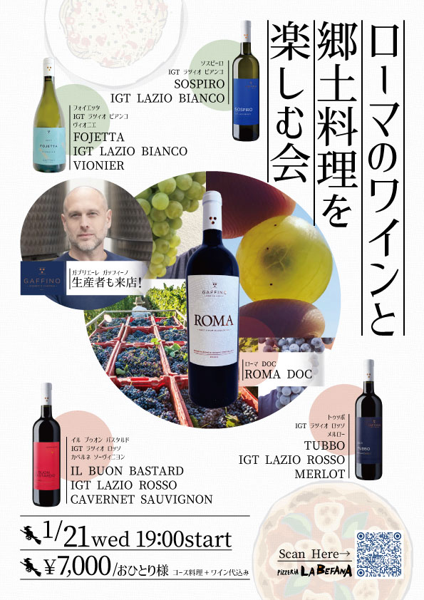 【ラ・ベファーナ下北沢】ローマのワインと郷土料理を楽しむ会を開催!