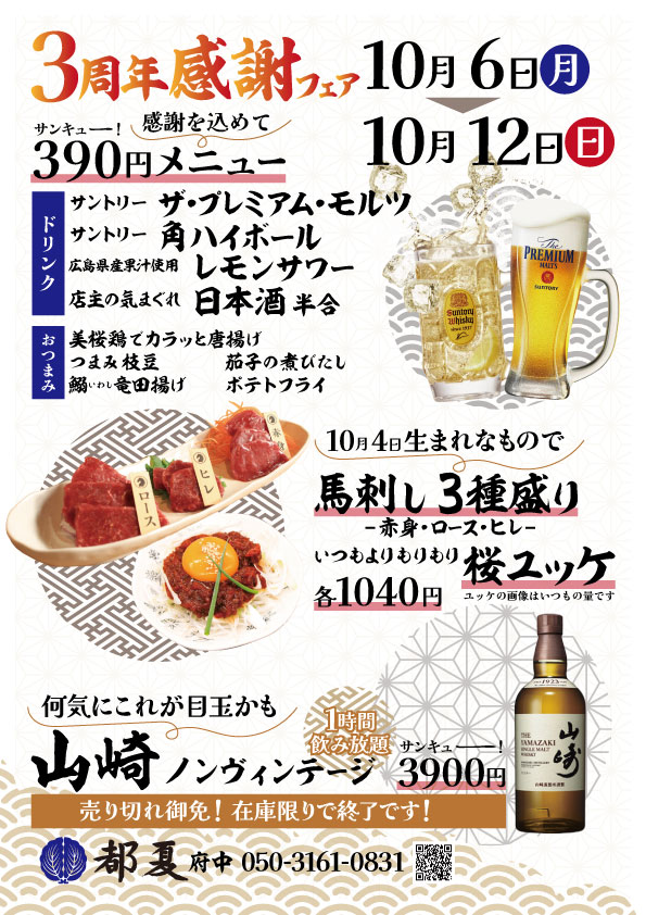 都夏 府中にて、3周年感謝フェアを開催いたします。